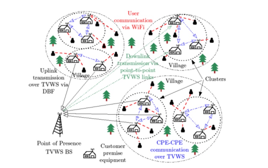 Figure: A novel architecture for rural broadband access over TVWS without additional infrastructure
